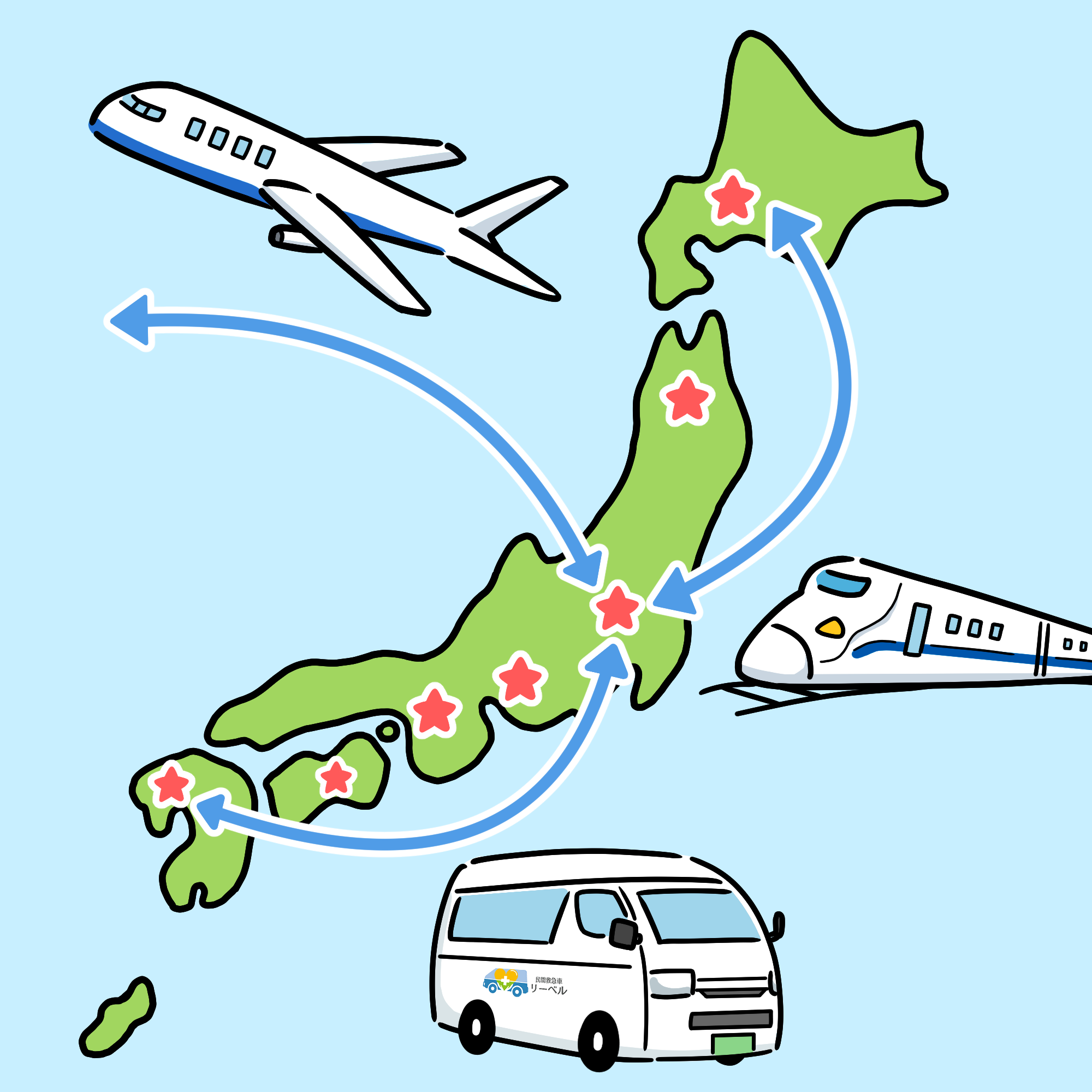 ご利用者様の健康状態、寝台車やストレッチャーなどの移動手段、目的地までの距離や時間などによって